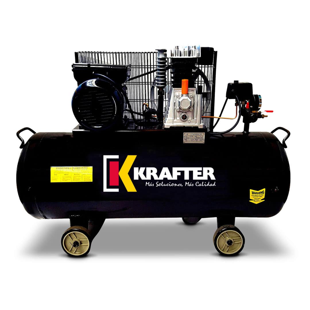 COMPRESOR KRAFTER ESTANQUE 100 LITROS 3 HP 2200 WATTS 8 BAR 115 PSI