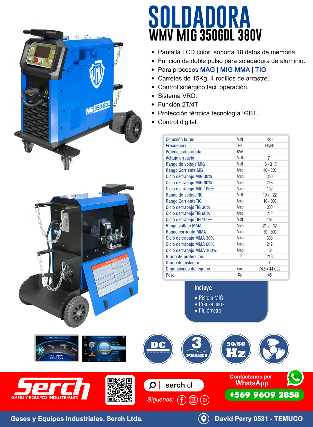 Maquina Inverter con tecnología IGBT. Proceso dual de soldadura: MIG – MMA
